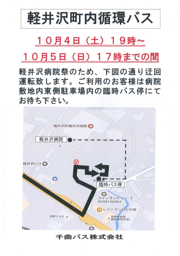 各 種:10/4~5軽井沢町内循環バス迂回運行のお知らせ Previous Post Next Post 千曲バスからのお知らせ 上田営業所の出入口施錠時間につきまして 2025年9月1日 美ヶ原高原観光バス2025の運行は終了しました 2025年6月24日2025年9月19日 高速バスの車内・床下トランク持ち込み等について 2025年6月17日 車内でのお忘れ物、荷物の引き取り間違いにご注意ください 2024年7月5日2024年7月26日 稲倉の棚田地域振興協議会様と弊社で棚田パートナーシップ協定を結びました 2022年12月8日2024年5月16日 令和4年6月15日 高速道路管理運営事業への協力支援に関する協定につきまして 2022年6月1日2022年11月23日 観光課・乗合高速課(高速バス部門)移転のお知らせ 2022年3月30日2022年12月6日