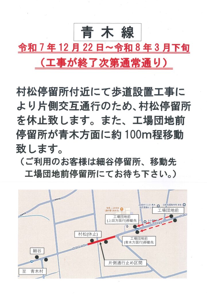 日頃より千曲バスをご利用くださいましてありがとうございます。